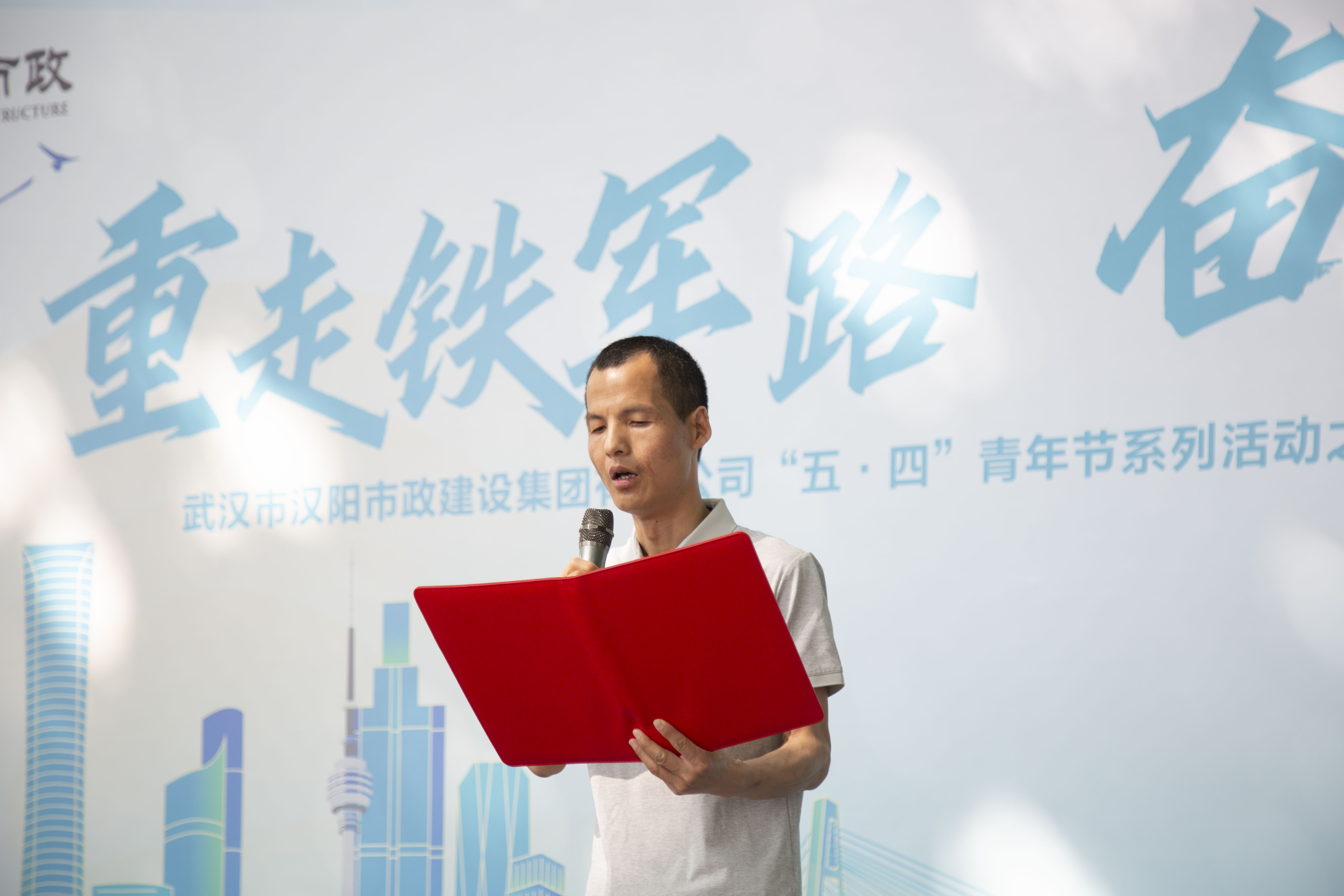 漢陽市政博宏建設黨委書記、董事長兼總經理鄒勇,代表勞動競賽參賽單位表態發言。