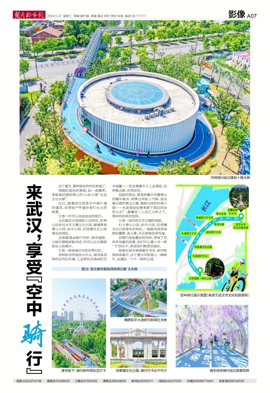 楚天都市報推出《來武漢,享受“空中騎行”》專版報道。